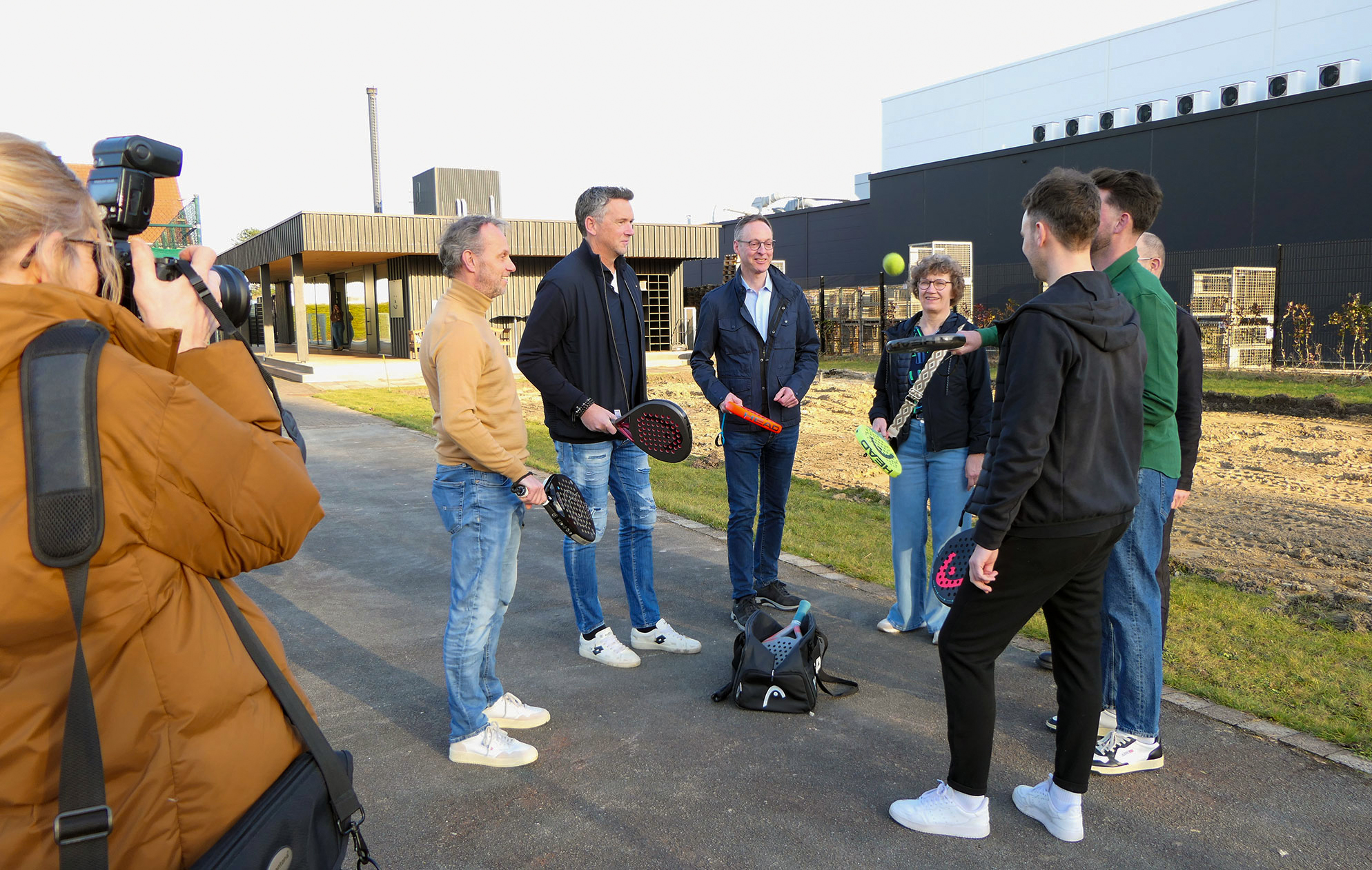 Pressetermin am 27.2.26 mit unserem strategischen Partner und Betreiber der Plätze, Christian Miele (Motions Racket Club GmbH), Bürgermeister Theo Mettenborg, Annette Ahn vom Stadtsportverband, Leo Lübke (COR), René Klindt und Ralf Hünnefeld vom Vorstand und natürlich unser Trainer Franco.